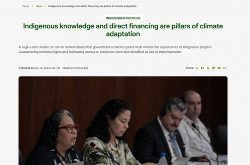The role of Indigenous peoples in the development of National Adaptation Plans (NAPS)—together with the protection of territories and the direct flow of climate finance to Indigenous communities—is considered essential to addressing climate change. These topics were discussed during the High-Level/Ministerial Event “Indigenous Adaptation”, held on Wednesday, November 12, at COP30.