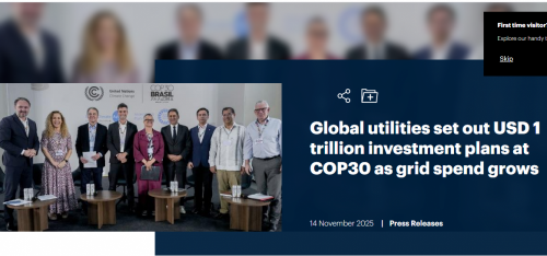 Global utilities set out USD 1 trillion investment plans at COP30 as grid spend grows