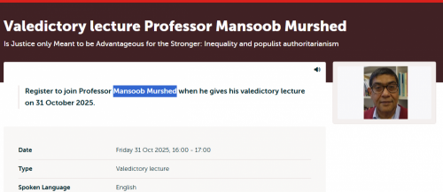 The title of his lecture is: 'Is Justice only Meant to be Advantageous for the Stronger: Inequality and populist authoritarianism'.