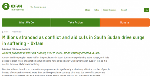 “We urge International donors not to forget what is happening in Sudan and the knock-on impact on South Sudan, where millions of vulnerable people could be left to starve or face a rapid spread in disease if the vital lifeline of aid is not urgently restored.”